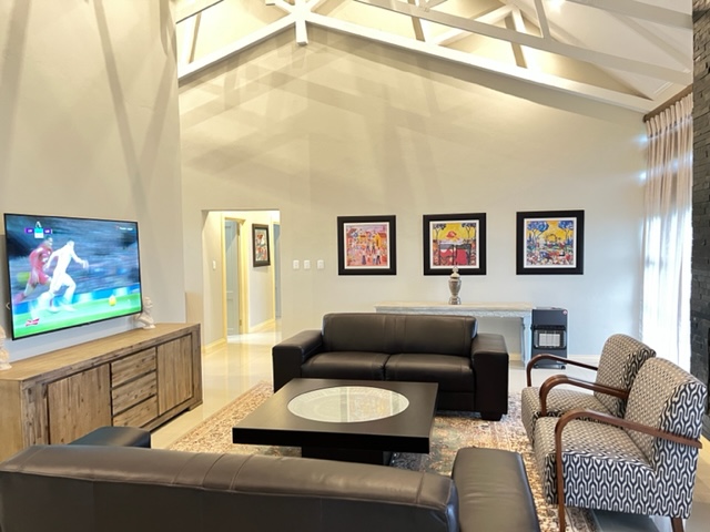 Sasavona Luxury Cottage, Parys (349 Vaal de Grace Estate) is located in Parys, 640m from Vaal de Grace Golf Course and 46km from DP de Villiers Stadium. Boasting a patio overlooking the golf course; this holiday home has 5 beds, 4 ensuite bathrooms, fully equipped kitchen with fridge and microwave, dining area, lounge with a flat screen smart TV, and a bar area with a with a flat screen smart TV. Towels and bed linen are provided. A wood fireplace is also available in the lounge as well as a braai area on the patio.